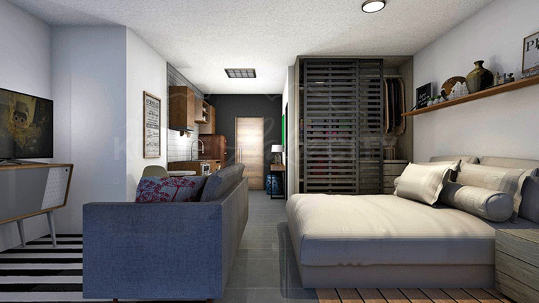 A residential unit that serves as a living, kitchen and bedroom with a separate bathroom, with 4 types of studios that are distinguished by area ranging from 30m2 to 39m2, a view as well as balcony. This contemporary unit is a bachelor\\\\\\\'s haven for working class living in the city. An open plan living kitchen, bedroom space and selfâcontained bathroom, it\\\\\\\'s a concept that encourages independence.