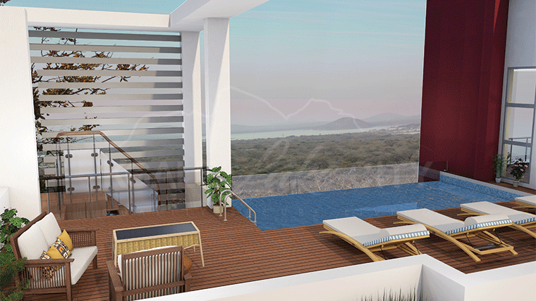 Designed with environmental integrity and enjoying sensational Dam and Hillside views, the Penthouse apartments offer the very best in Luxury. These apartments have two different living schemes, a duplex three-bedroom penthouse and a one−bedroom pent