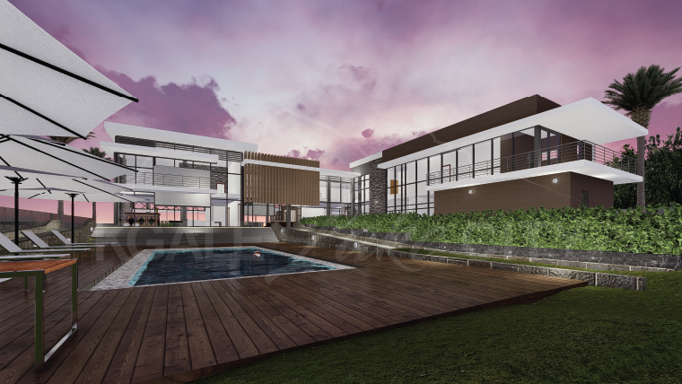 Perfection redefined! Picture yourself in the incomparable luxury of a lakeside home. Located in the delightful commune of Kgale Lake City on a large plot by the lake. The area of these houses ranges from 900 to 1000 sq.m. This exceptional property has extremely impressive features. The spacious ground floor hall leads into a huge living room with an impressive ceiling height, a large dining room, a fully fitted kitchen and a family room. The night section is serviced by superb lighting opening into a glass mezzanine overlooking the ground floor living room and an infinity − edge swimming pool that blends into the lake waters. The modern open plan living and dining room is designed to accommodate elegant dinner parties. The master bedroom suite and guest bedroom are on the second level as well as the other three bedrooms, each with their own ensuite bathroom, toilet. It also includes an exclusive interior finish − Huge wine cellar − Library-Spa area − 4 garage spaces. The beautifully planted landscaped area with swimming pool provides a haven of relaxation and the wide terraces facing the lake are ideal for entertaining in style. The back of the residence consists of shallow concrete steps running alongside a concrete wall creating a walkway and garden to connect to the landscaped area for the lake. The property also offers an array of recreational amenities, including a swimming pool, tennis court, half basketball court, and spa.